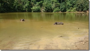 Jetzt nur noch ein Stück weiter runter, am Ende noch durch die obligatorischen Reisfelder und dann sind wir wirklich endlich am Fluß angelangt wo wir von einem Longboat abgeholt und zum Camp zurückgebracht werden wo wir gestern mit den Mountainbikes hingefahren sind.
