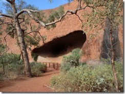 Es wird 16:00 Uhr als wir endlich zum Uluru selbst kommen. Cooper erzählt wieder einiges über den Felsen selbst, die Entstehungsgeschichte laut Ureinwohnern, die alten Höhlenmalereien und kulturellen Bräuche der Stämme die hier früher gelebt haben. Dabei wandern wir auch ein kurzes Stück um den Berg.