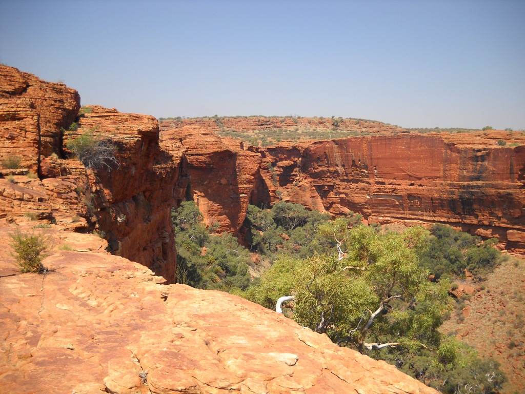 Zu Mittag sind wir beim Kings Canyon. Da heißt es mal 3h Wandern, u.a. auch Bergauf. Nachdem ich mich auf ca. 40°C und das bergauf eingestellt habe, finde ich die 30°C, die es dann tatsächlich waren, gar nicht mal so schlimm. Unser Führer – Cooper – kennt sich echt gut aus, und erzählt uns ein paar spannende Geschichten über die Pflanzen, Entstehungsgeschichte des Canyons und über die Ureinwohner (die Aborigines, aber das darf man nicht mehr sagen). Cool fand ich, dass es da haufenweise Ghost Gums gibt (das sind Bäume), deren Rinde einen LF von 15 haben. Damit haben sich die Ureinwohner eingerieben und so keinen Sonnenbrand bekommen.